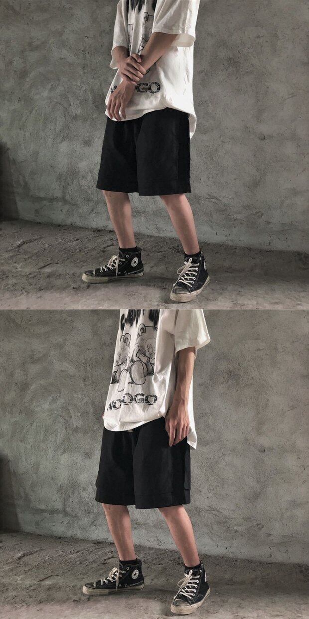ショーツ レディーストレンドブラックルーズハイウェストウェストカジュアルパンツ ストリート ボーイズ ウエスト デーモン85900577083