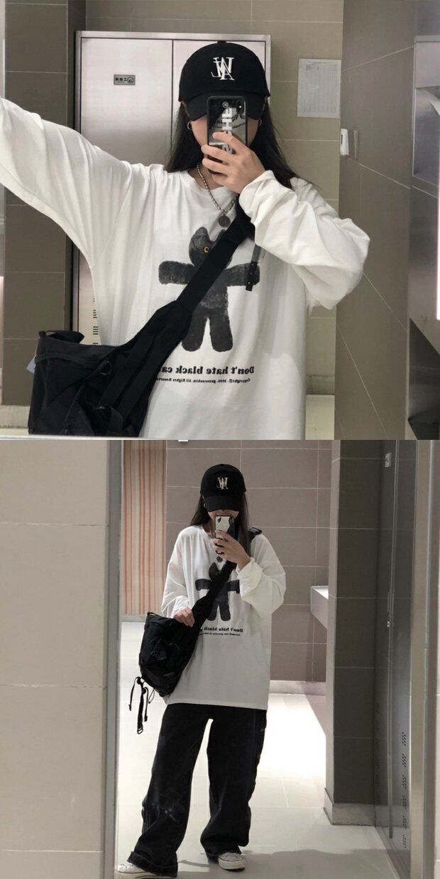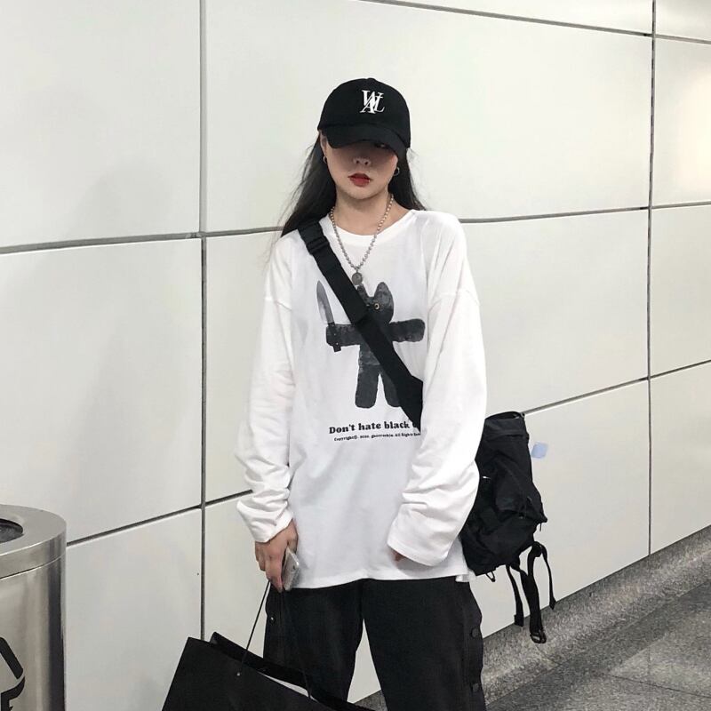 ホワイトTシャツシャツ レディーススプリング韓国ファッショントレンドダークルーズゆったり ロング 春物 ボーイズ スタイル 長袖 デーモン25706432039