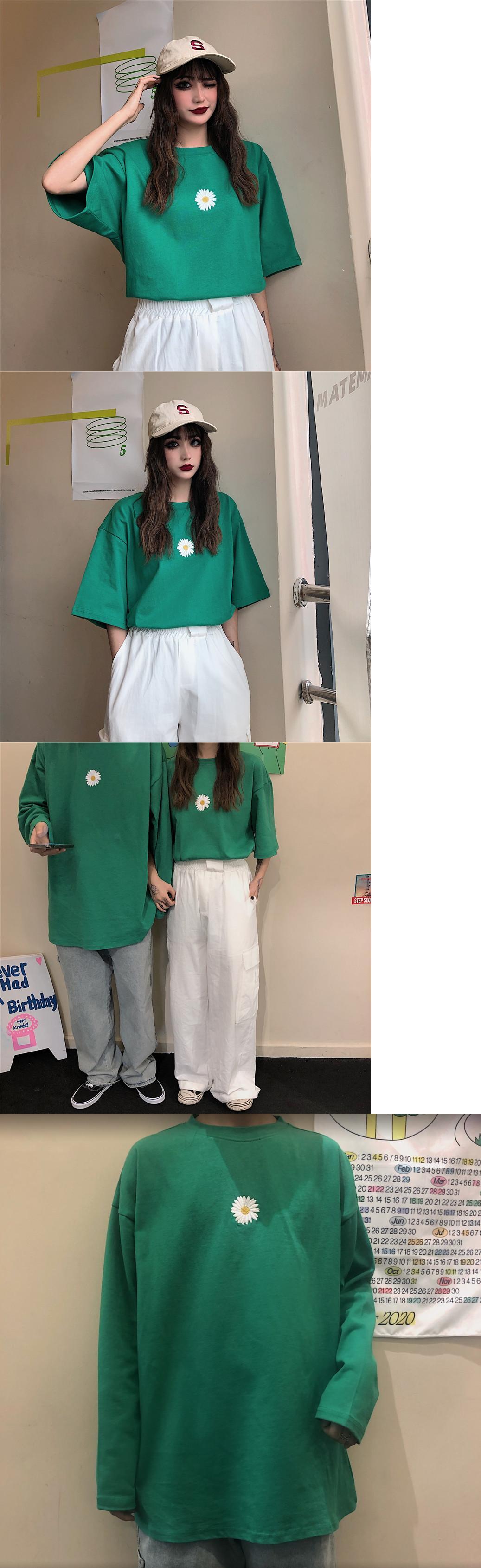Tシャツシャツ レディース夏服韓国ファッショントレンドスタンダード刺繍ルーズスタイルゆったりホワイトトップス ロング レトロ 夏物 ボーイズ 長袖 デーモン4974448