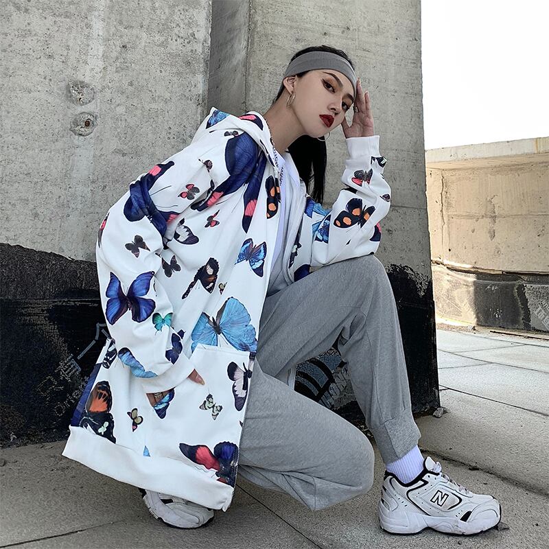 スタイルセーター ジャケット レディース韓国ファッショントレンドButterflyデザイン プリントルーズフード ボーイズ CHIL69875421741