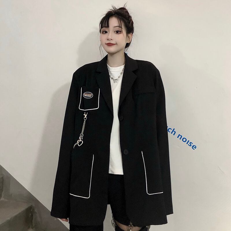 ジャケット レディース韓国ファッショントレンドダークチェーン ルーズブラック 大人ガーリー スウィート キュート カジュアル CHIL39435594300