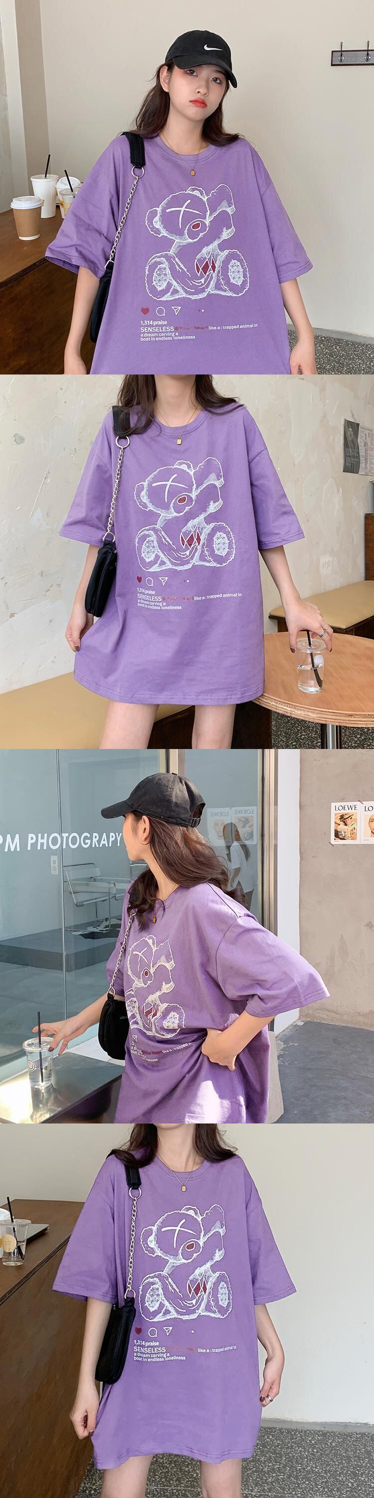 夏服スタイルプリント柄韓国ファッションルーズTシャツ 大きめサイズ 夏物 CHIL41025456218