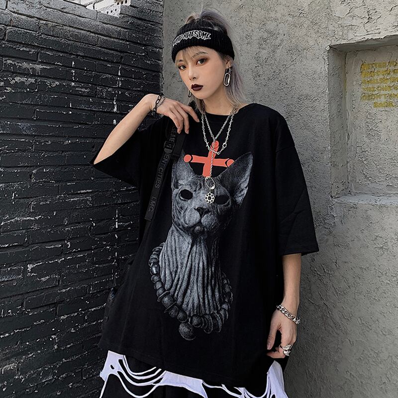 スプリング夏服トレンドスタイルダークプリント柄ルーズTシャツトップス ストリート 原宿 春物 夏物 CHIL63595667963