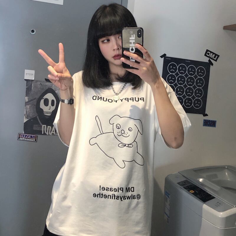 夏服韓国ファッショントレンドスタイルプリント柄ルーズTシャツトップス レディース 夏物 CHIL65067406778