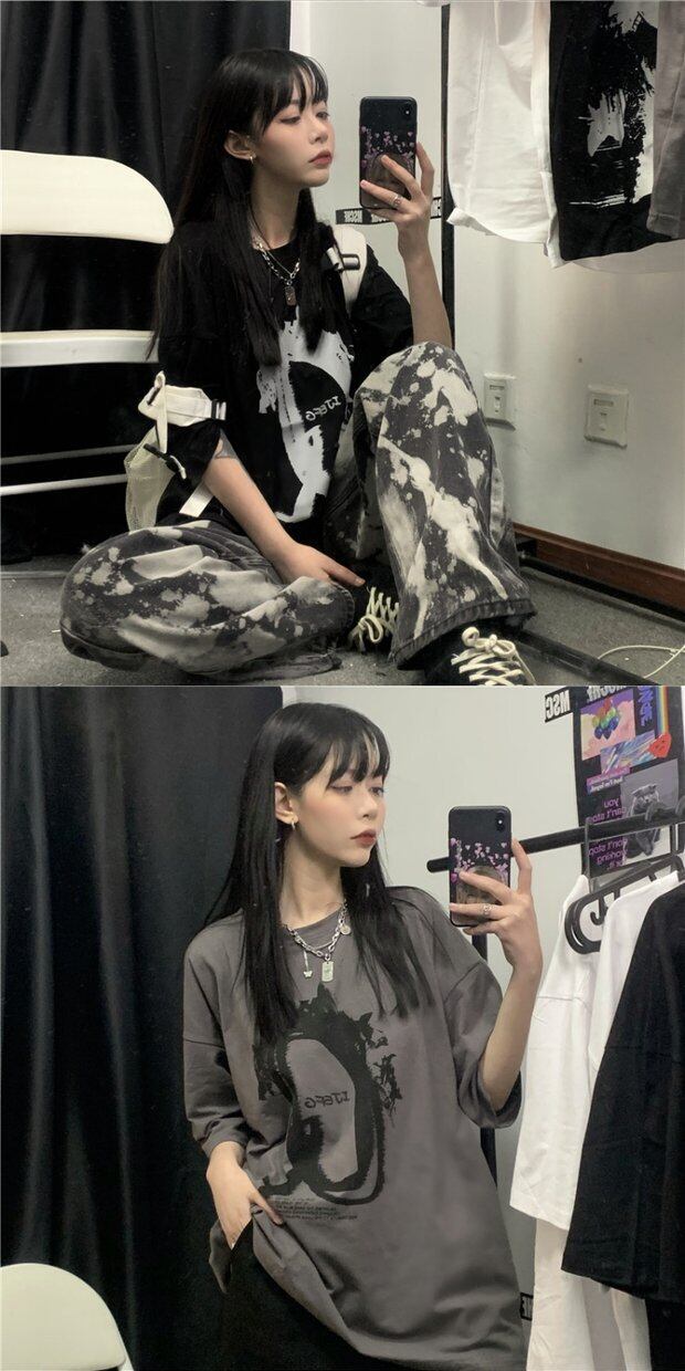 スプリングトップス レディース韓国ファッショントレンドブラックルーズTシャツ 原宿 春物 スタイル デーモン70179872516