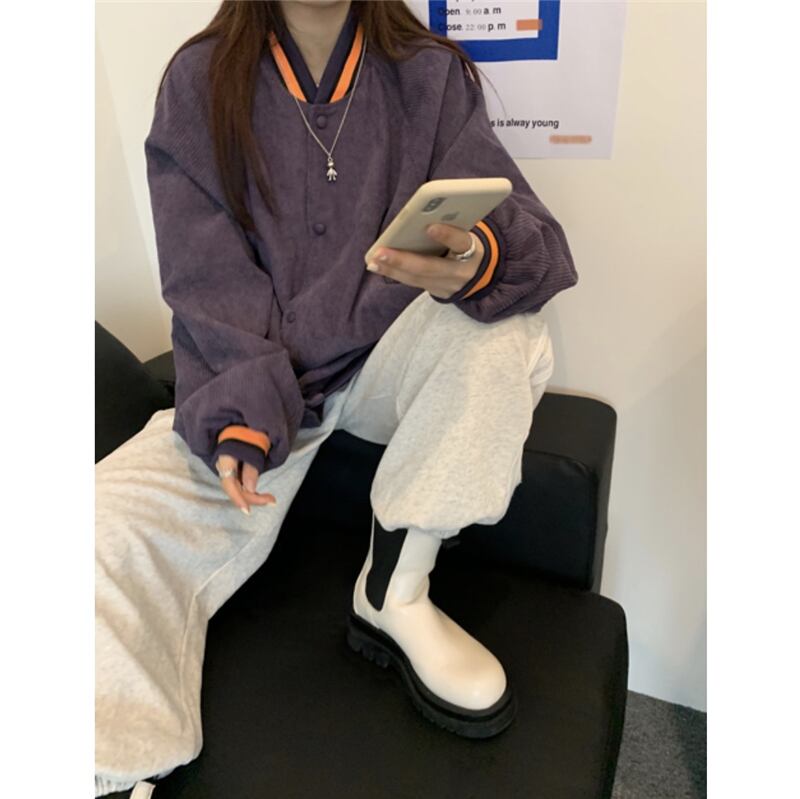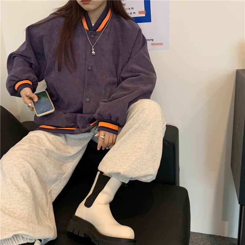 スプリングジャケット レディース韓国ファッショントレンドスタンダードコーデュロイルーズトップス レトロ 春物 ボーイズ スタイル CHIL16644858228