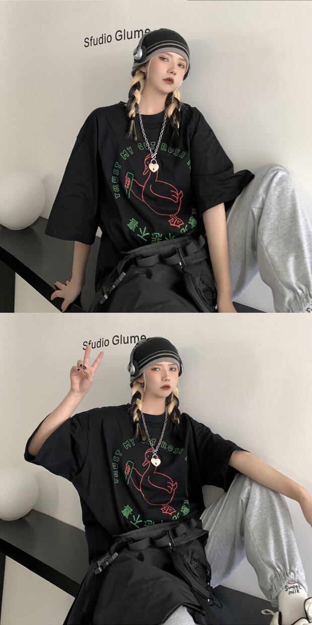スプリングTシャツシャツ レディース韓国ファッショントレンドスタンダードプリント柄ルーズゆったり レトロ 春物 スタイル デーモン98540255564