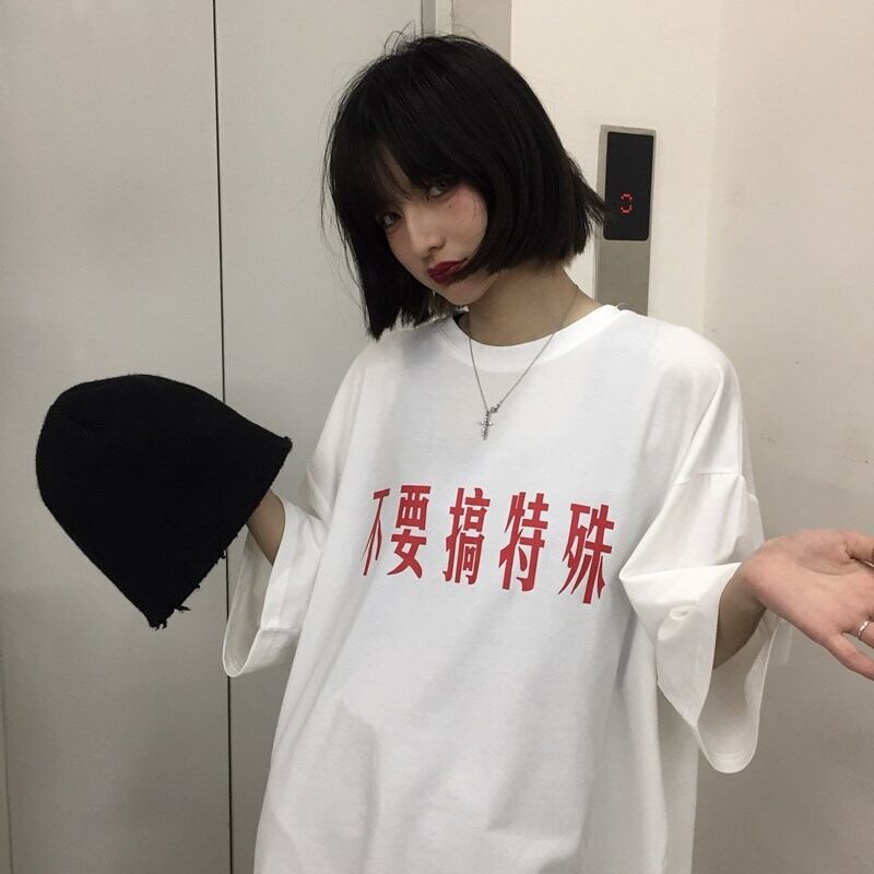 韓国ファッションルーズ半袖スリーブTシャツ ショート ハーフスリーブ CHIL28949209310