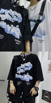 スプリングトップス レディース韓国ファッショントレンドスタイルプリントルーズラウンドネック半袖スリーブTシャツ ショート ハーフスリーブ 原宿 春物 Oネック ボーイズ デーモン421633359