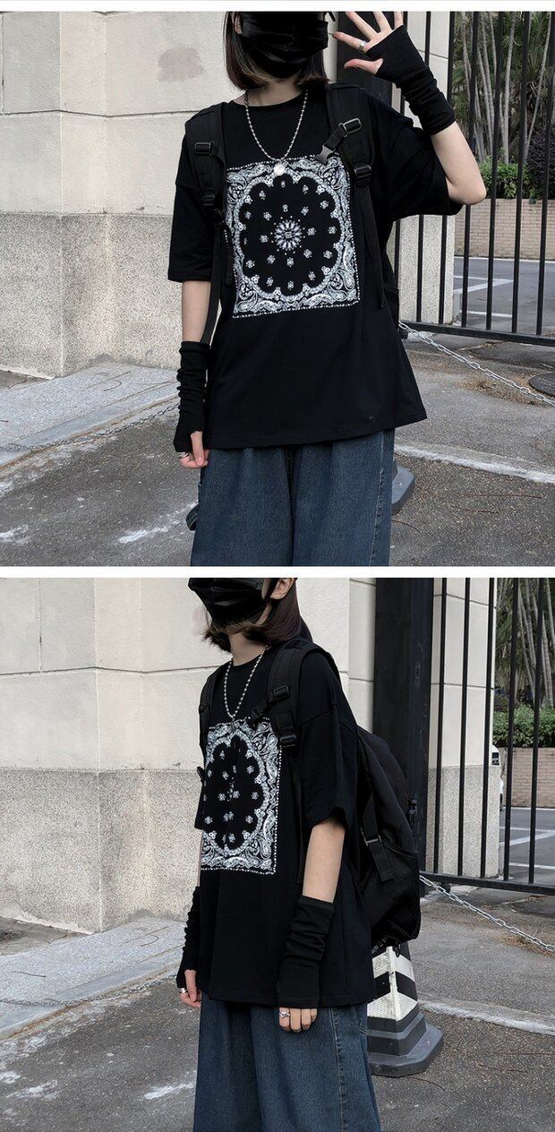 トップス スプリングレディース韓国ファッショントレンドスタンダードFlowerデザイン プリント柄ルーズTシャツ レトロ 春物 フラワーデザイン ボーイズ スタイル デーモン99405625784