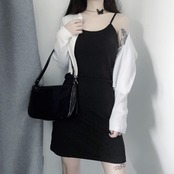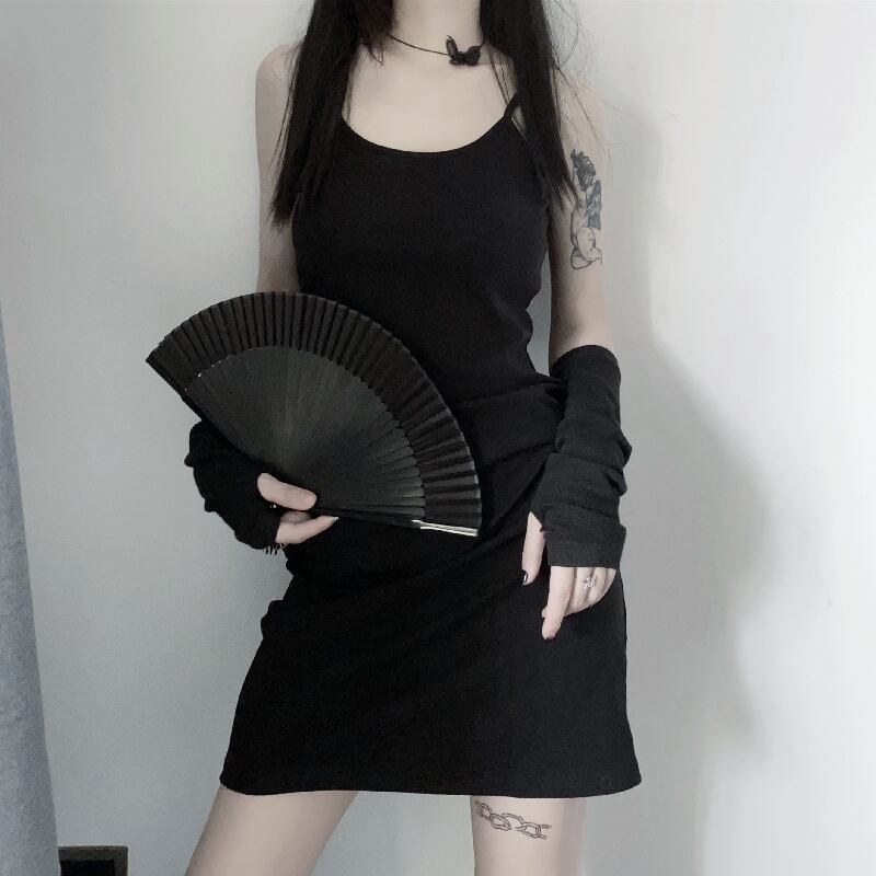 ブラックワンピースレディーススプリング夏服ダーク 春物 夏物 CHIL96395234177