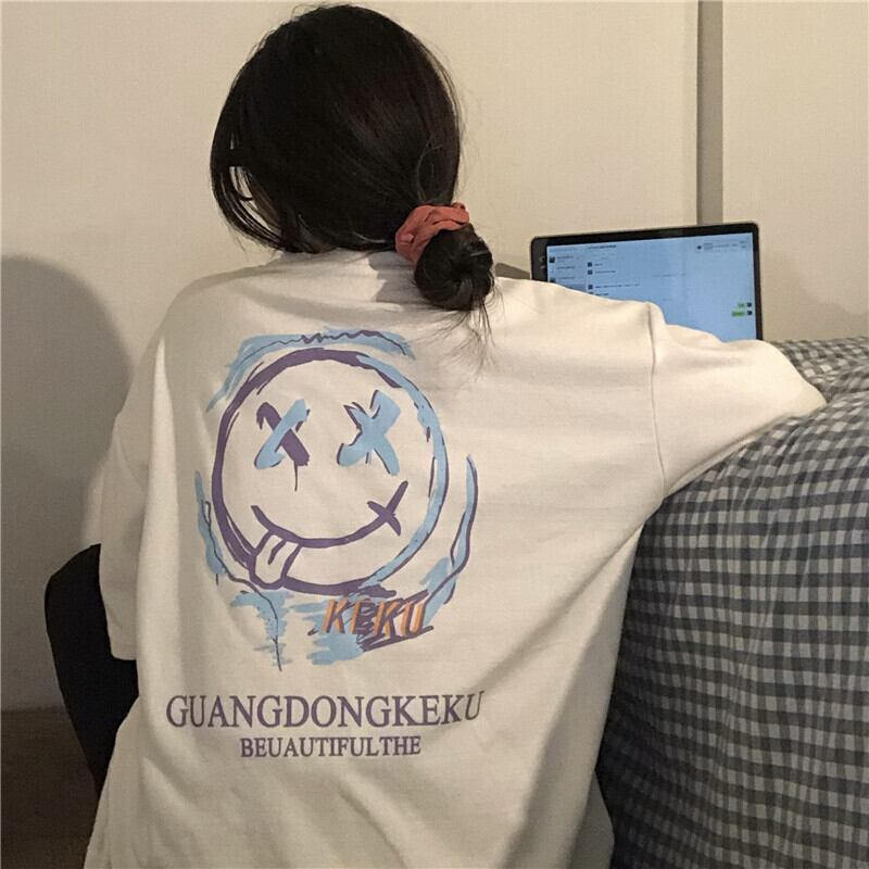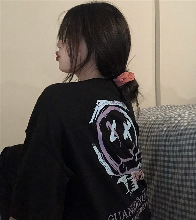 スプリング夏服韓国ファッションルーズラウンドネック半袖スリーブシャツ バックプリントTシャツレディース ショート ハーフスリーブ 春物 夏物 Oネック スタイル CHIL88375144027