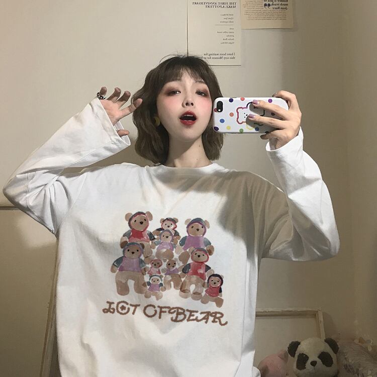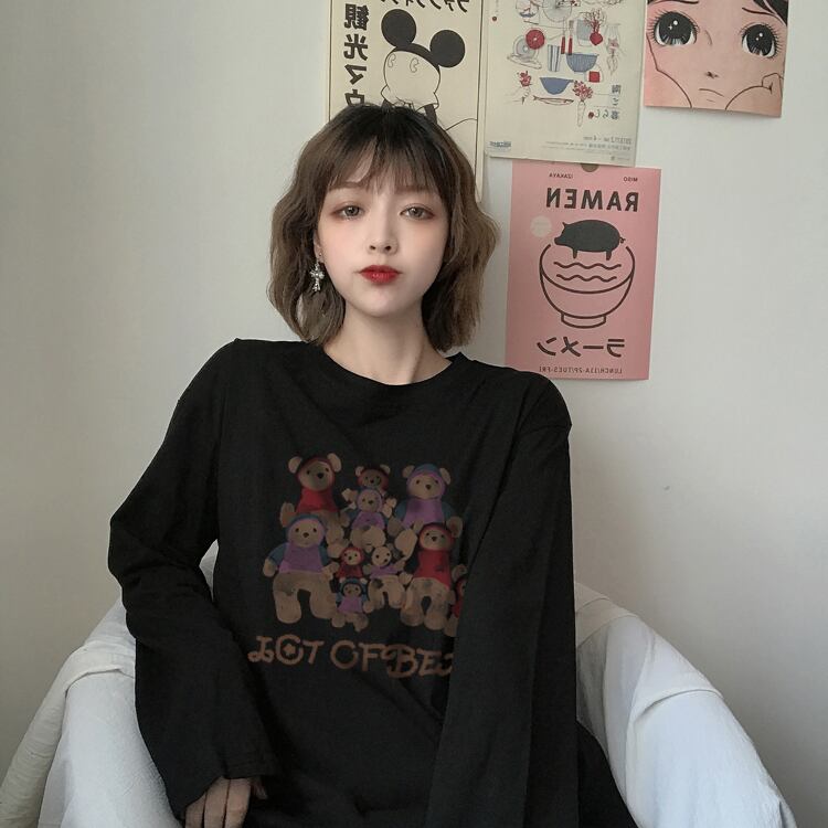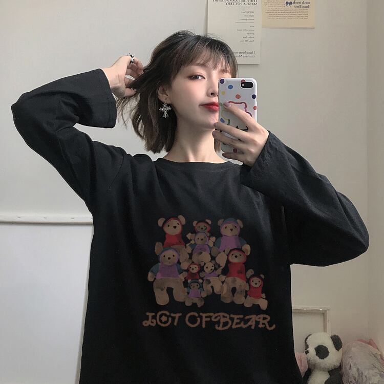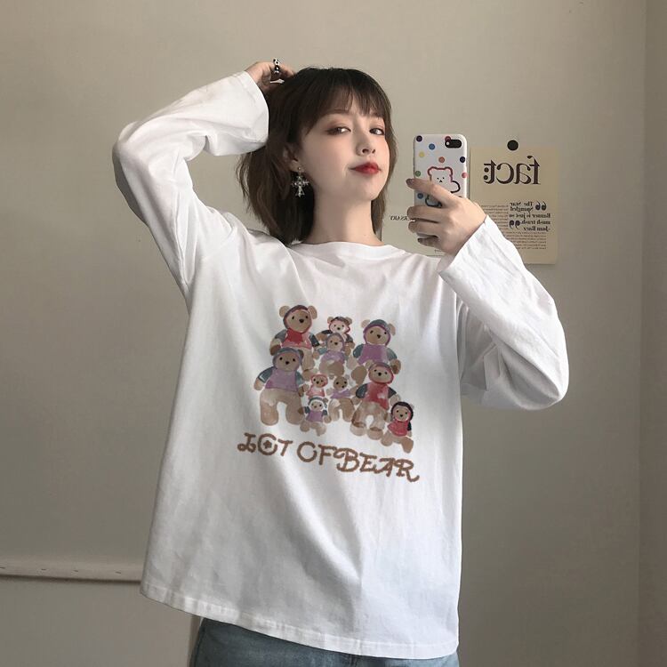 スプリングTシャツトレンド韓国ファッションルーズトップス レディース ロング 春物 スタイル 長袖 CHIL40625173455