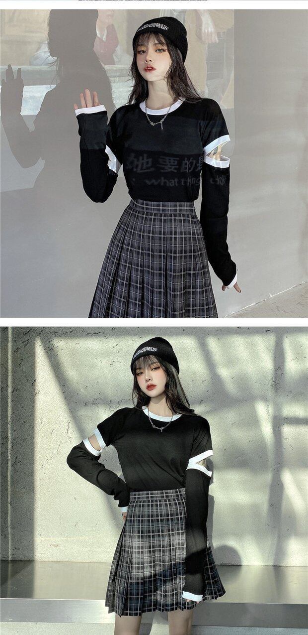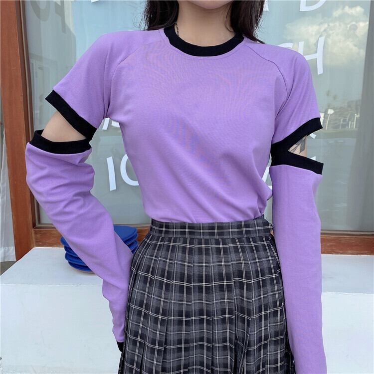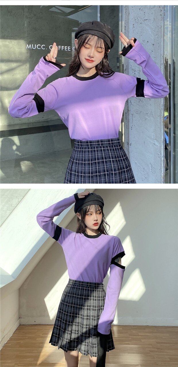 ゆったりTシャツシャツ レディーススプリング韓国ファッショントレンドカラー薄手ルーズ ロング 春物 ステッチ スタイル 長袖 デーモン26584931595