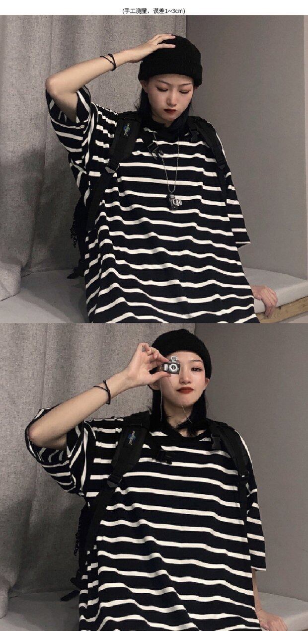 レディーススプリング韓国ファッショントレンドストライプルーズラウンドネックTシャツ ストリート 春物 Oネック スタイル デーモン84191640074