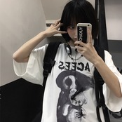 トレンドダークプリント柄ルーズ半袖スリーブTシャツトップス ショート ハーフスリーブ 原宿 CHIL24792533978