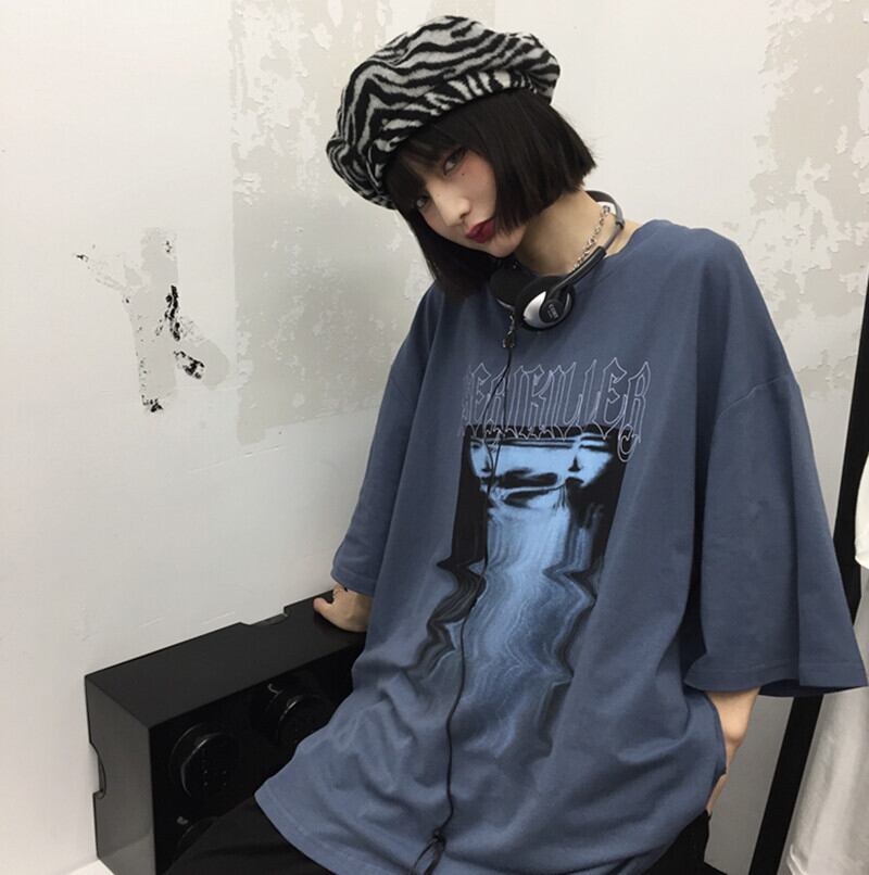 Tシャツトップス レディーススプリング韓国ファッショントレンドスタイルプリント柄ブラックルーズ半袖スリーブ ショート ハーフスリーブ 原宿 春物 ボーイズ デーモン20872245653