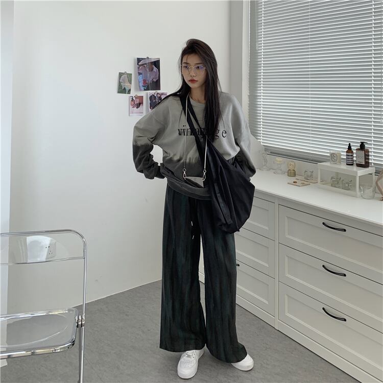 韓国ファッションルーズスタンダードカラーセーター パンツ レディース ロング レトロ スタイル 長袖 CHIL13190433801
