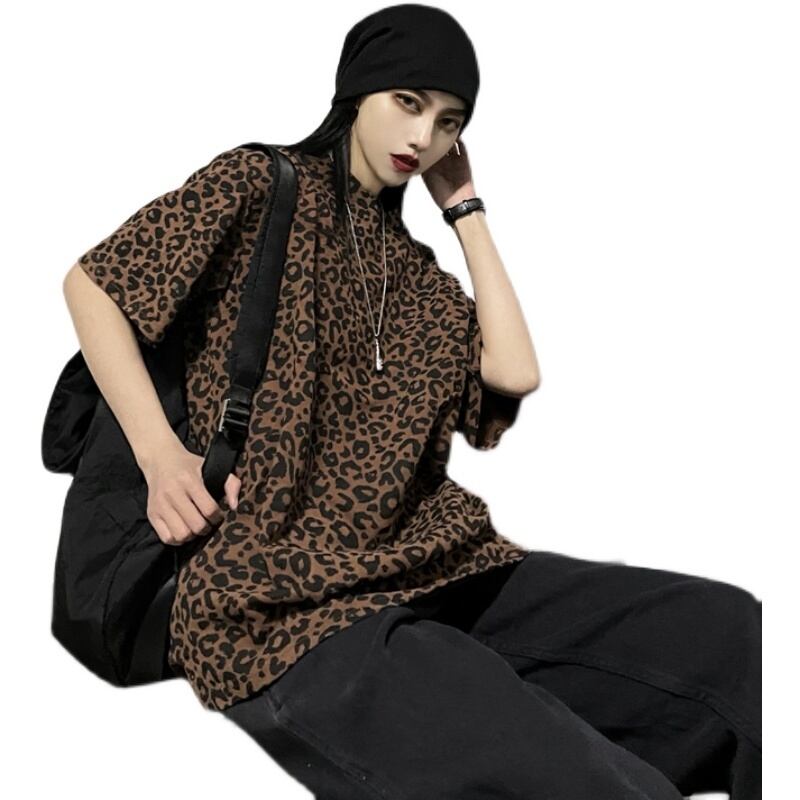 レオパードプリント柄Tシャツシャツ トレンドスプリングルーズラウンドネックトップス 春物 Oネック CHIL26407913337