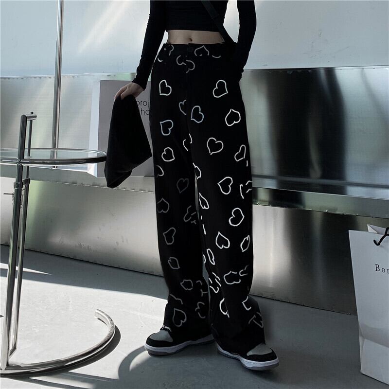 レディーススプリングトレンドプリントワイドレッグパンツ ハイウェストウェストルーズカジュアル ストリート 春物 ワイドパンツ ボーイズ ウエスト CHIL68575490445