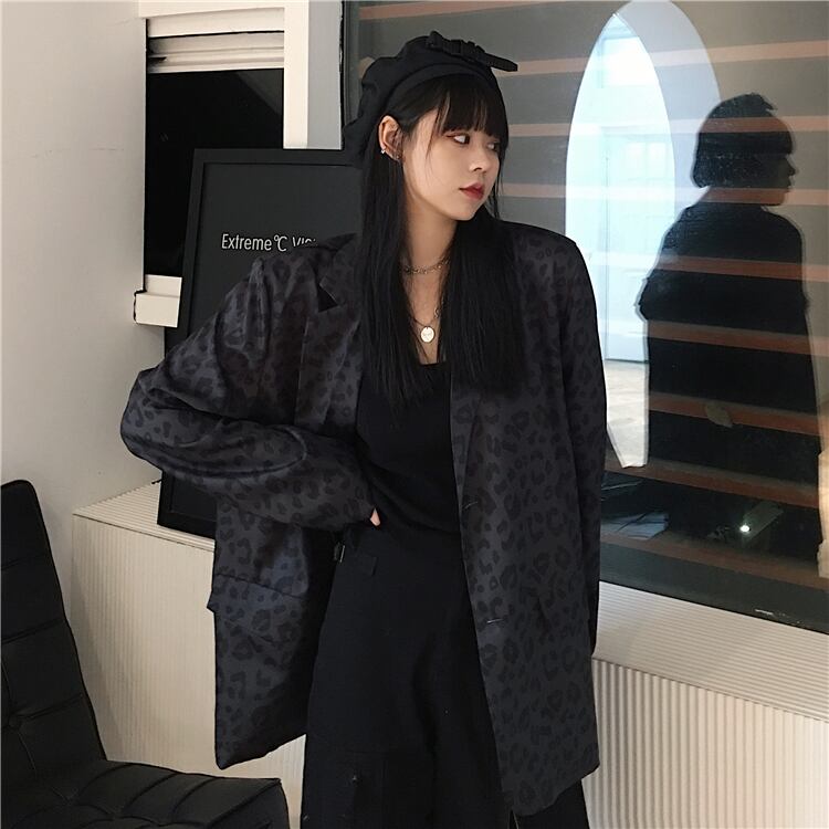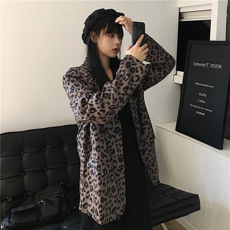 スタンダードスプリング秋物トレンドレオパードプリント柄ルーズ長袖スリーブジャケット ロング レトロ ストリート 春物 オータム CHIL38083937513