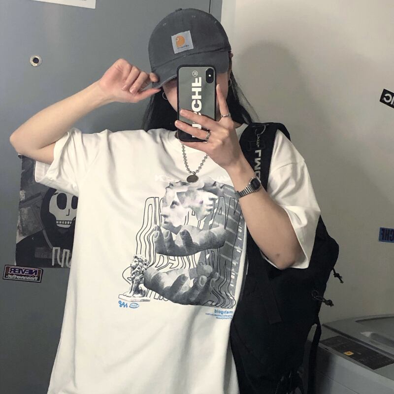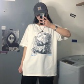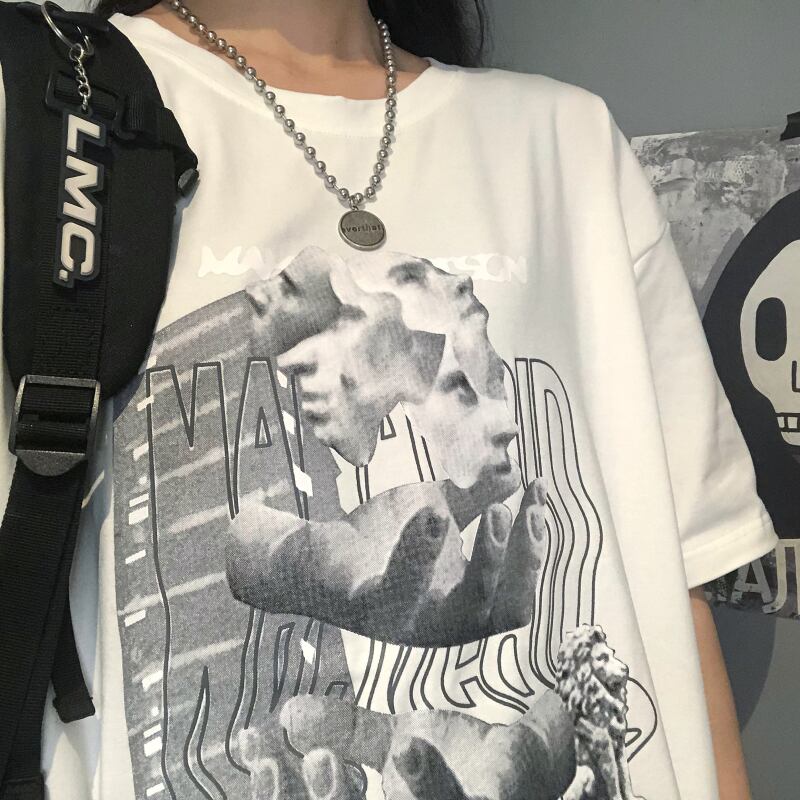 夏服韓国ファッショントレンドダークパターンプリントルーズTシャツトップス レディース 夏物 CHIL79488052780