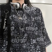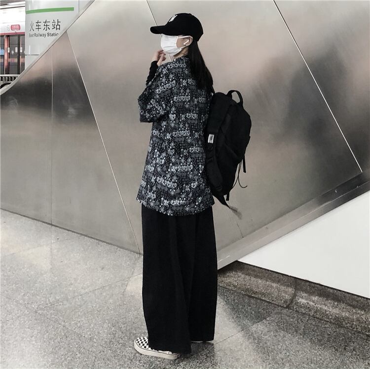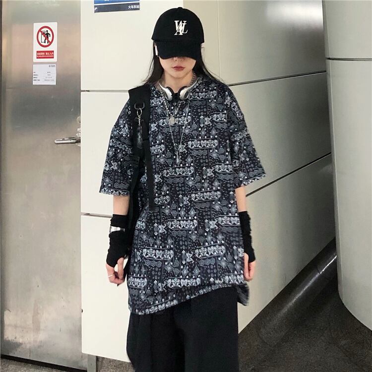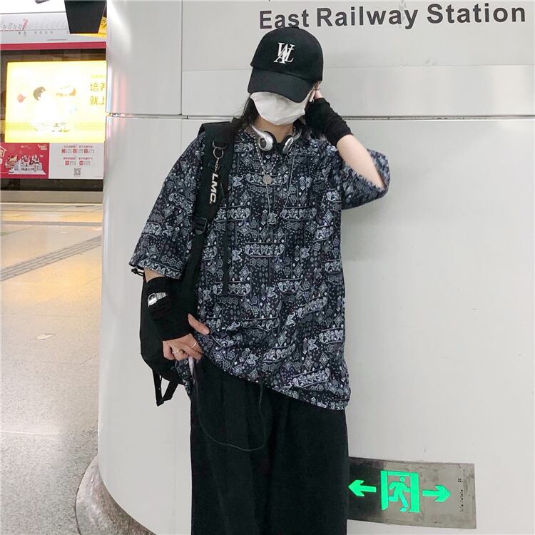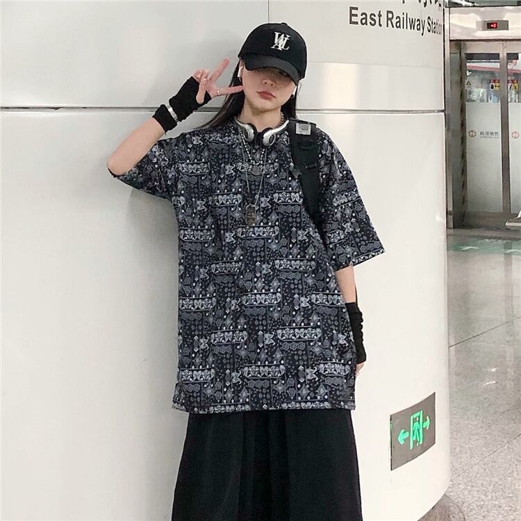 Tシャツレディースメンズスプリング夏服韓国ファッショントレンドスタンダードFlowerデザイン ルーズラウンドネックトップス レトロ 春物 夏物 Oネック フラワーデザイン CHIL14272378687