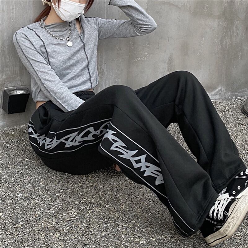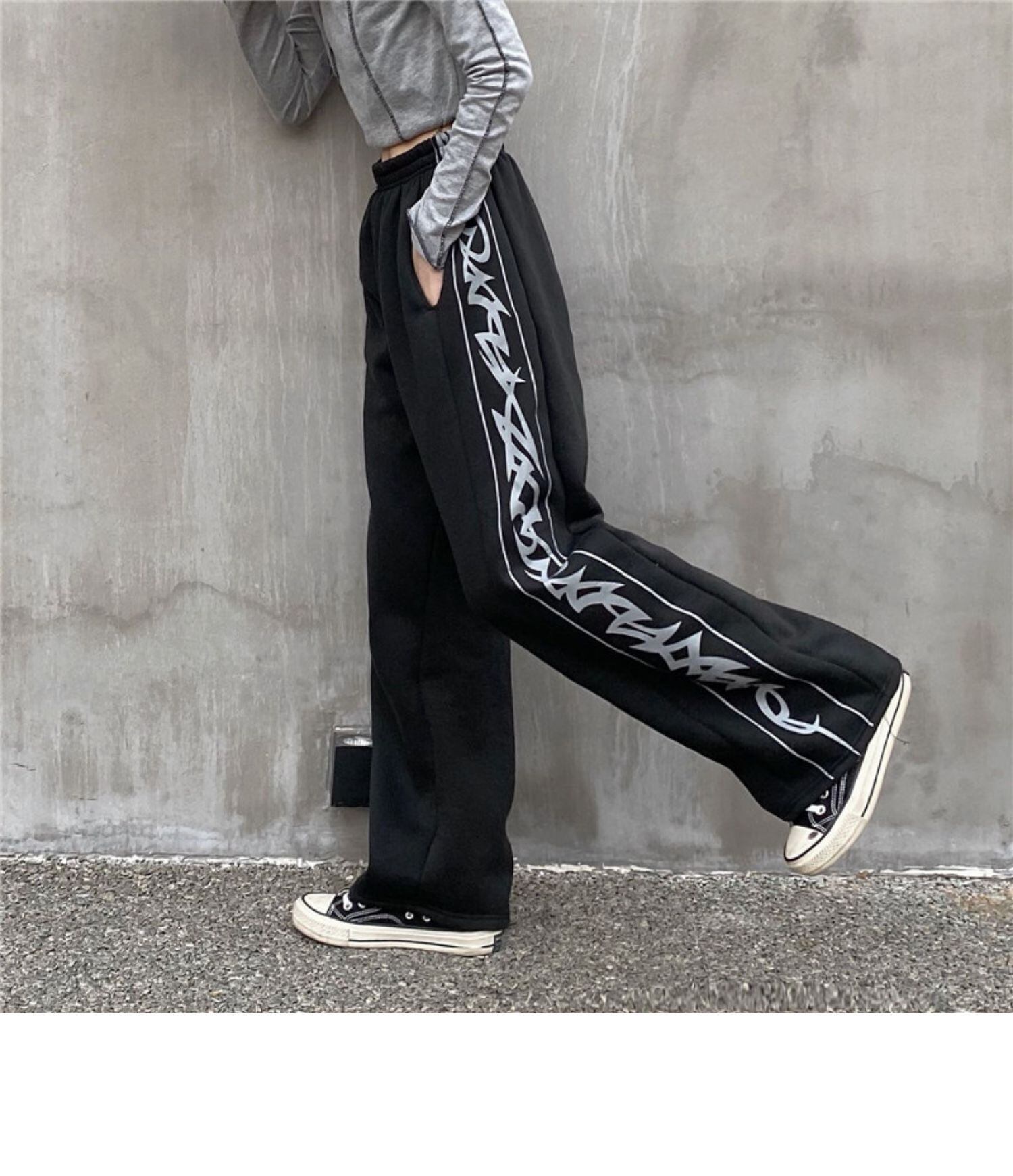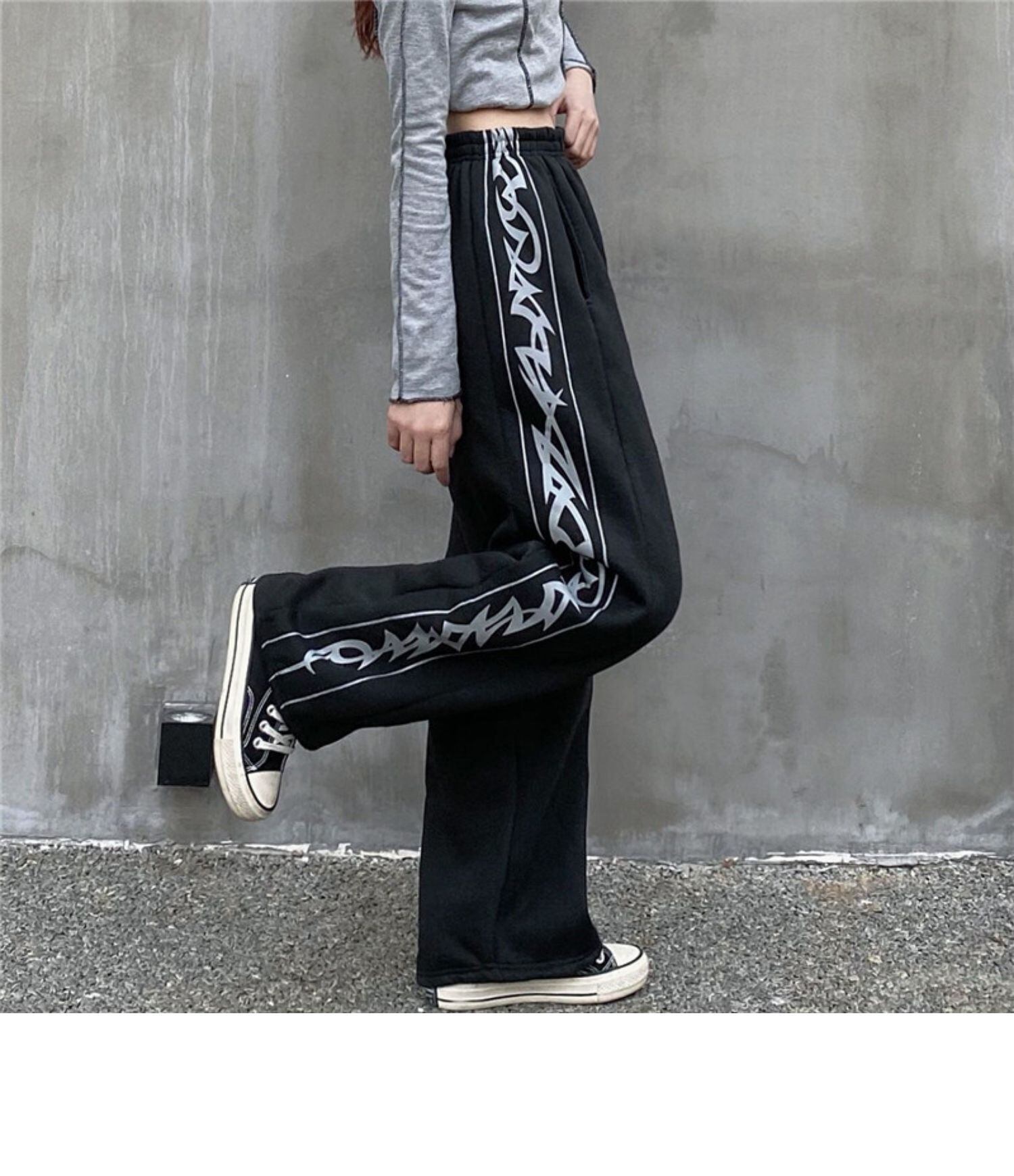パンツ スプリング韓国ファッションスタンダードプリントワイドレッグワイルド レトロ 春物 ワイドパンツ CHIL16010664223