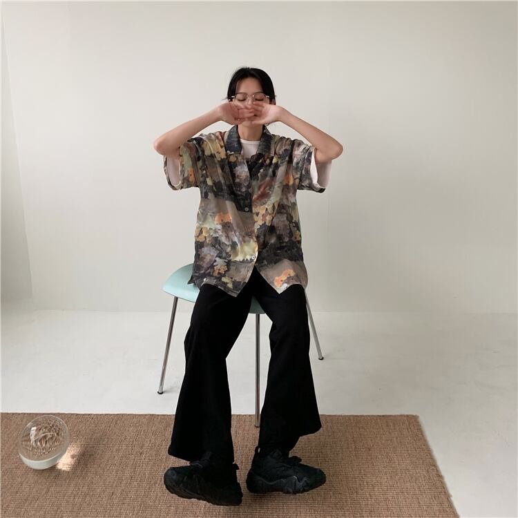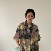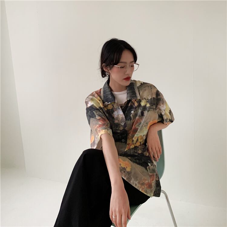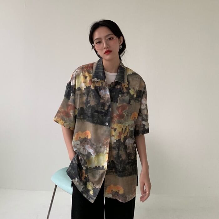 シャツ レディーススタンダードトップス 夏服ルーズトレンドヴィンテージ レトロ 夏物 ビンテージ CHIL22583385545