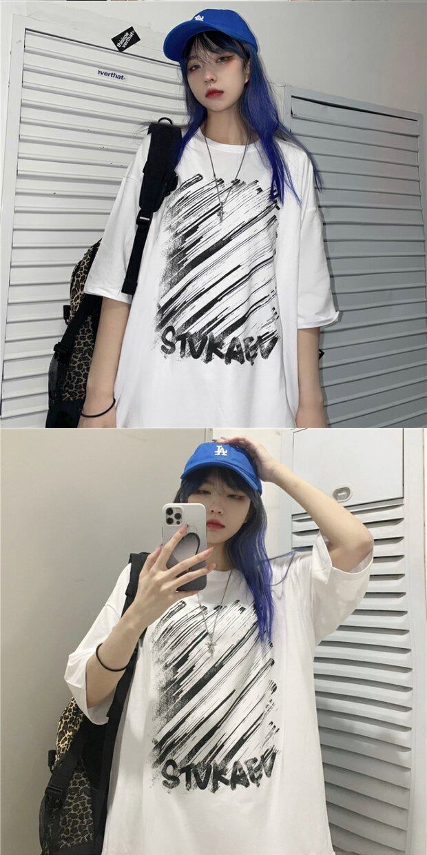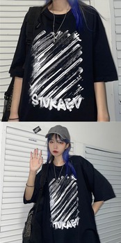 スプリングTシャツレディース韓国ファッショントレンドダークブラックルーズトップス 春物 スタイル デーモン23663481848