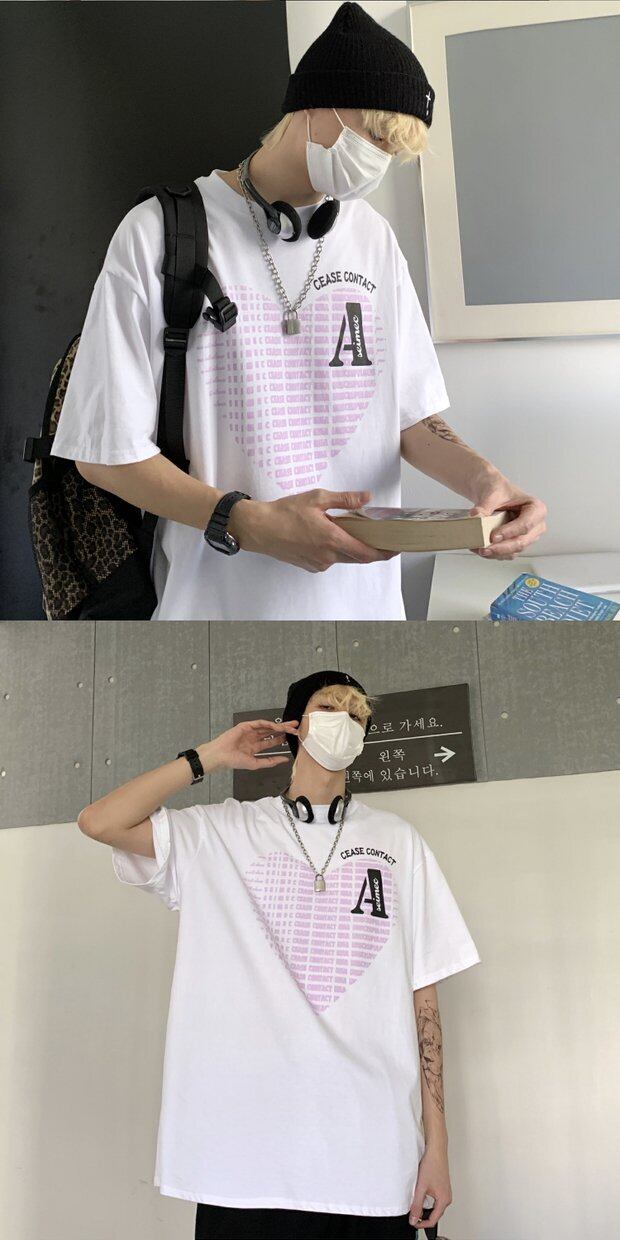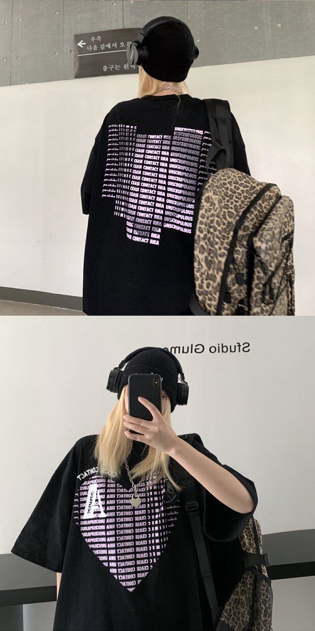 スプリング韓国ファッショントレンドプリントルーズブラックTシャツトップス 春物 ボーイズ スタイル デーモン52914852950