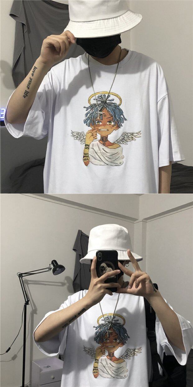 ブラックTシャツシャツ トップス レディース夏服韓国ファッションプリント柄ゆったり 夏物 デーモン96331899528