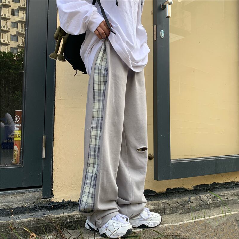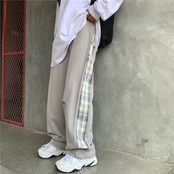 パンツ レディーススプリング韓国ファッショントレンドスタンダードルーズ格子柄ワイドレッグカジュアル レトロ ストリート 春物 ワイドパンツ ステッチ CHIL18666998929