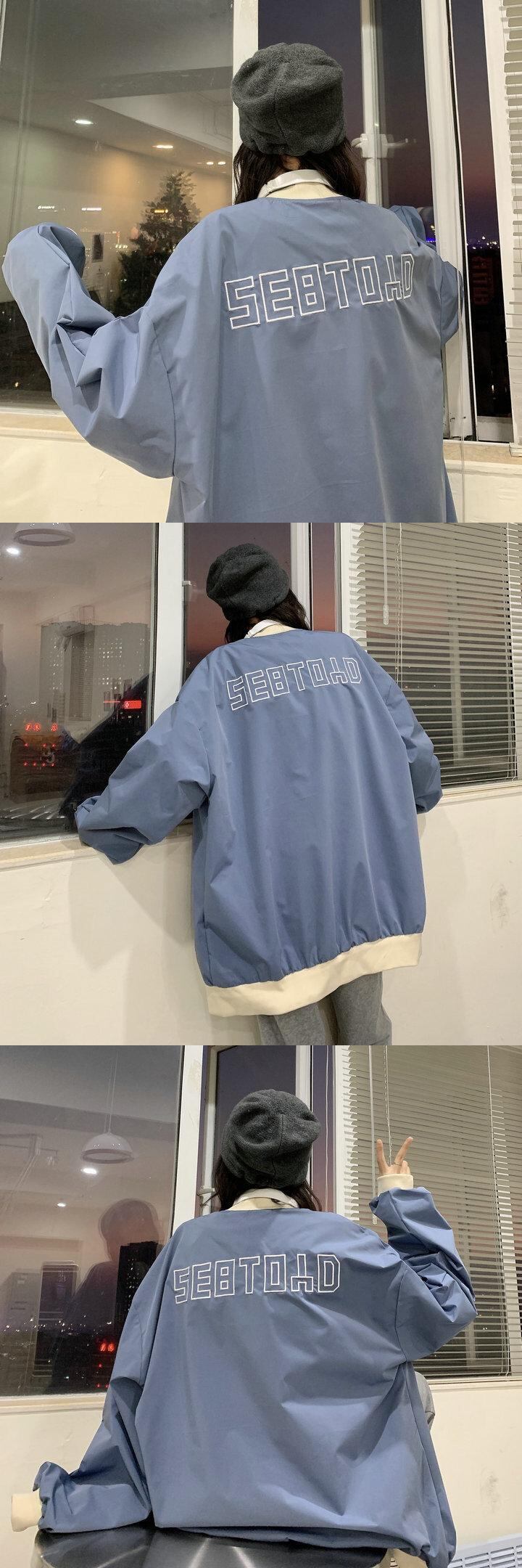 ジャケット スプリング秋物トレンドブルーカラールーズトップス ストリート 春物 オータム CHIL65682877272