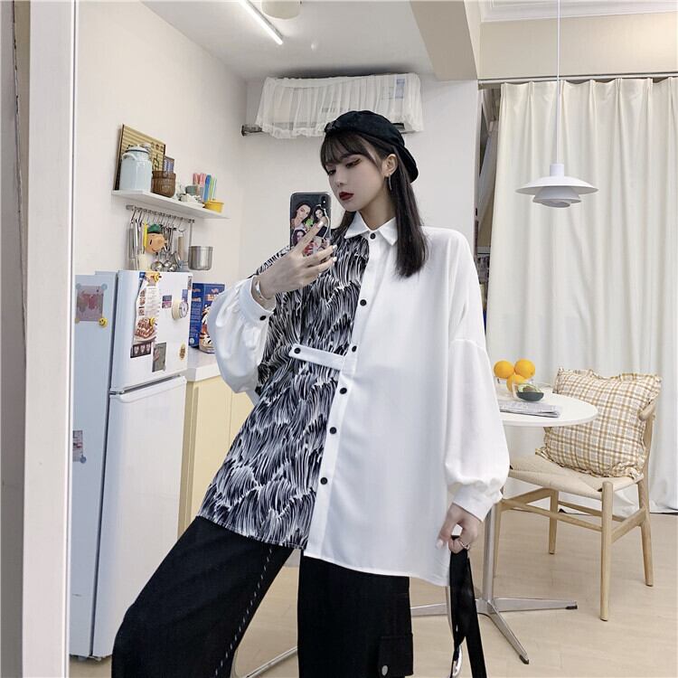 スプリング韓国ファッションスタイルルーズカジュアルシャツ ジャケット ロング 春物 ステッチ 長袖 CHIL10553301483
