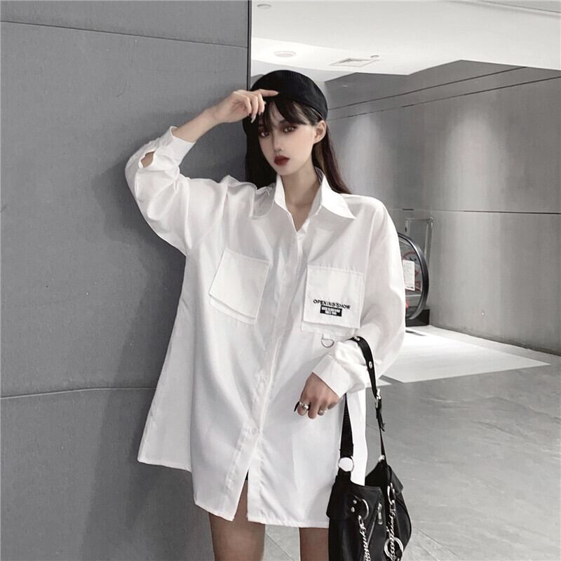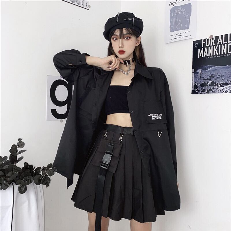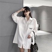 シャツ トップス レディース韓国ファッションスタンダードルーズジャケット プリーツスカート ロング レトロ 長袖 デーモン4688178