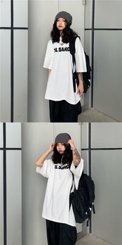 ホワイトTシャツトップス レディーススプリング韓国ファッショントレンドプリントルーズゆったり 春物 スタイル CHIL54061443352