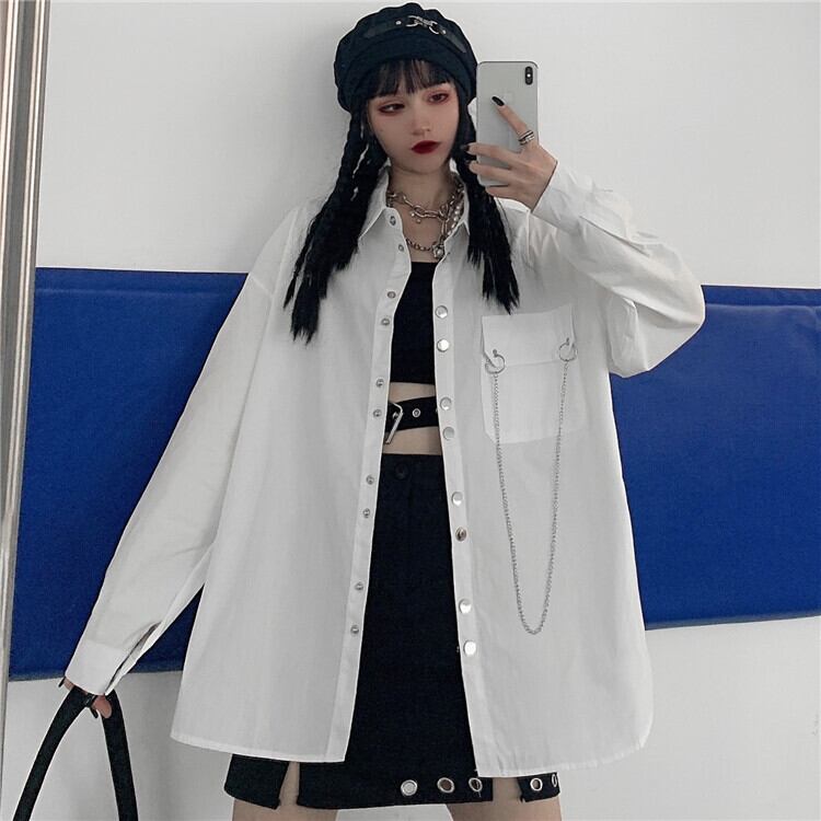 スタイルシャツ ジャケット レディーススプリング韓国ファッショントレンドチェーン ルーズカジュアルブラック ロング 春物 ボーイズ 長袖 デーモン37382102813