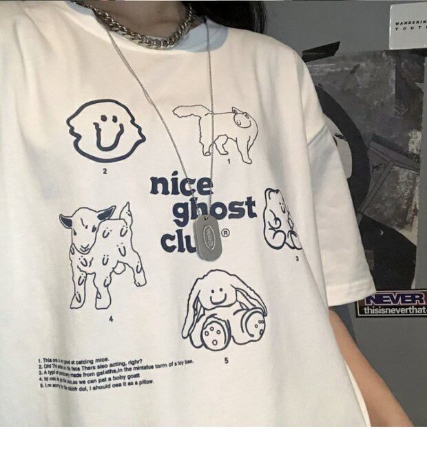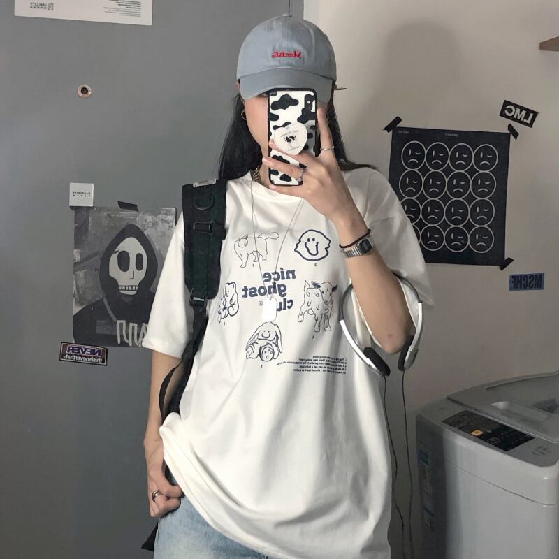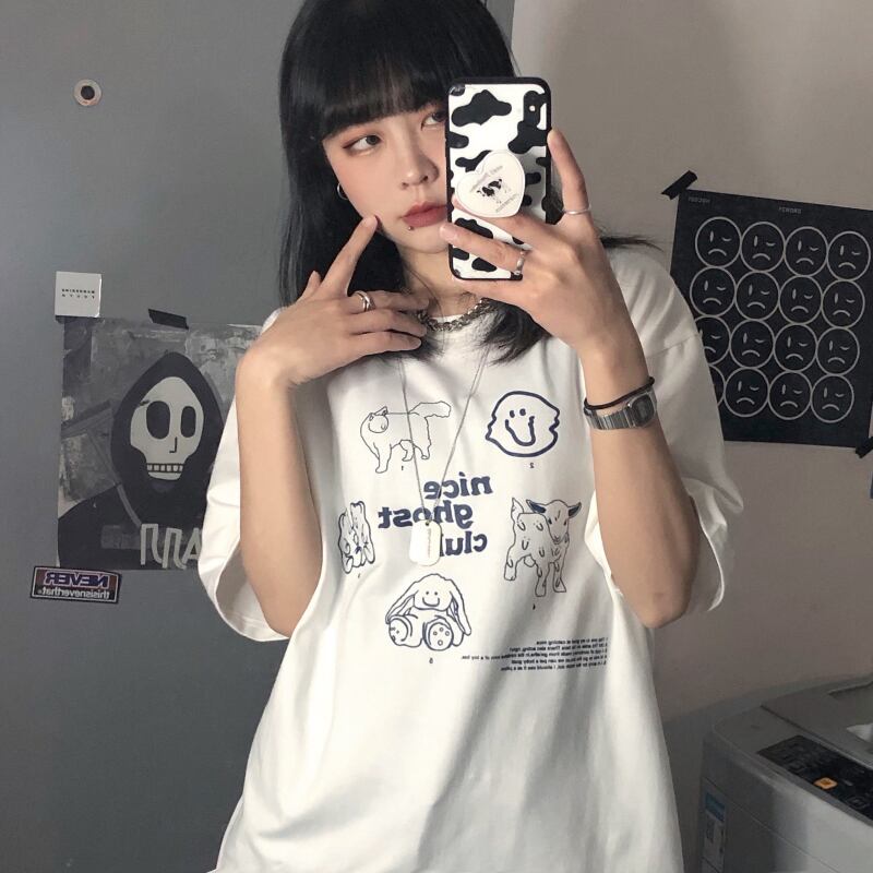 ホワイトTシャツシャツ 夏服レディース韓国ファッショントレンドプリントルーズ 夏物 スタイル デーモン23632666788