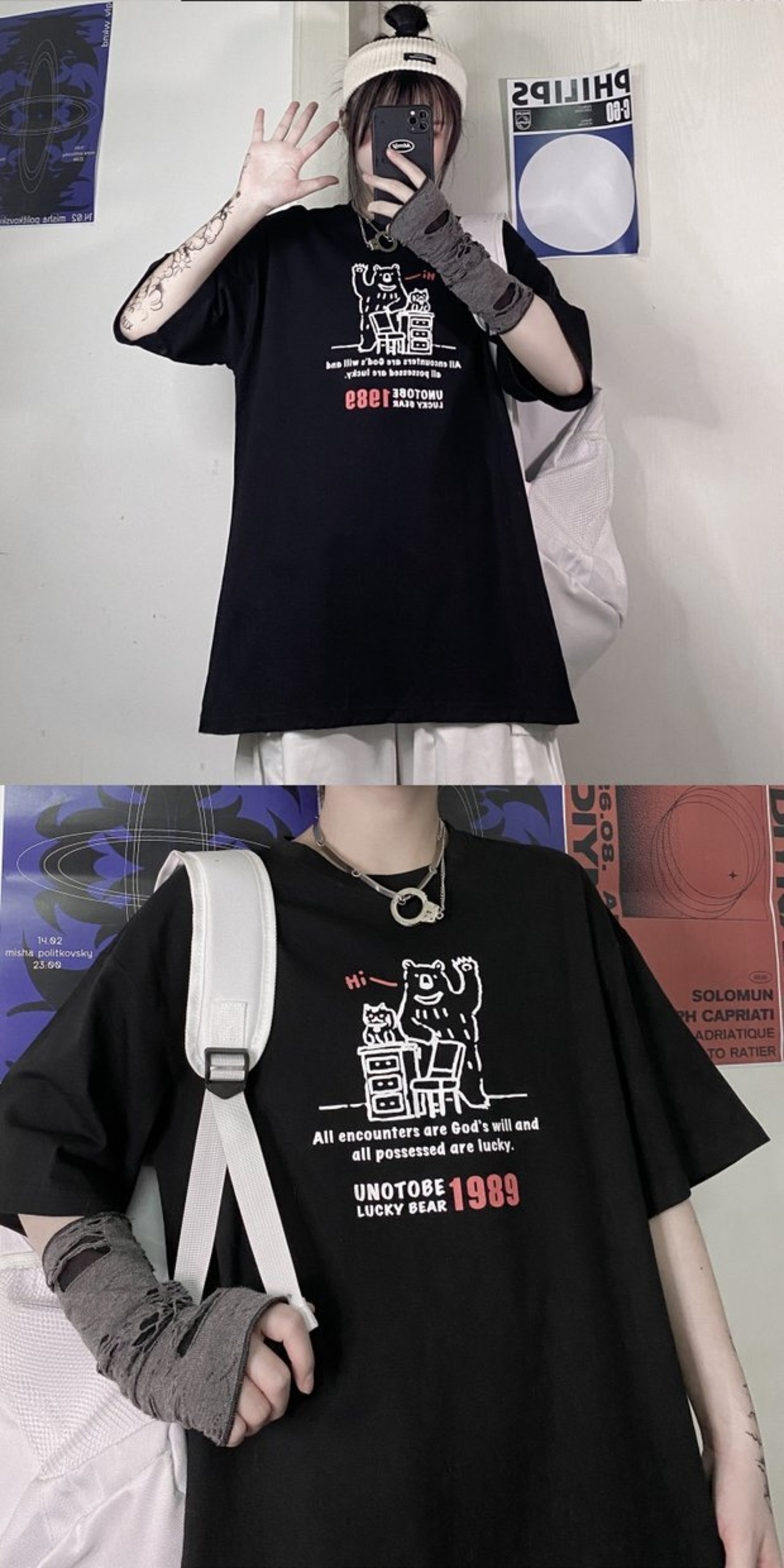 Tシャツレディーススプリング韓国ファッショントレンドスタンダードプリント柄ホワイトルーズラウンドネックトップス レトロ 春物 Oネック スタイル デーモン82241487385