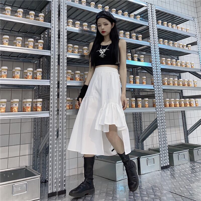 スカート レディーススプリングブラックハイウェストウェストAライン 春物 ウエスト ミドル丈 デーモン67721458259