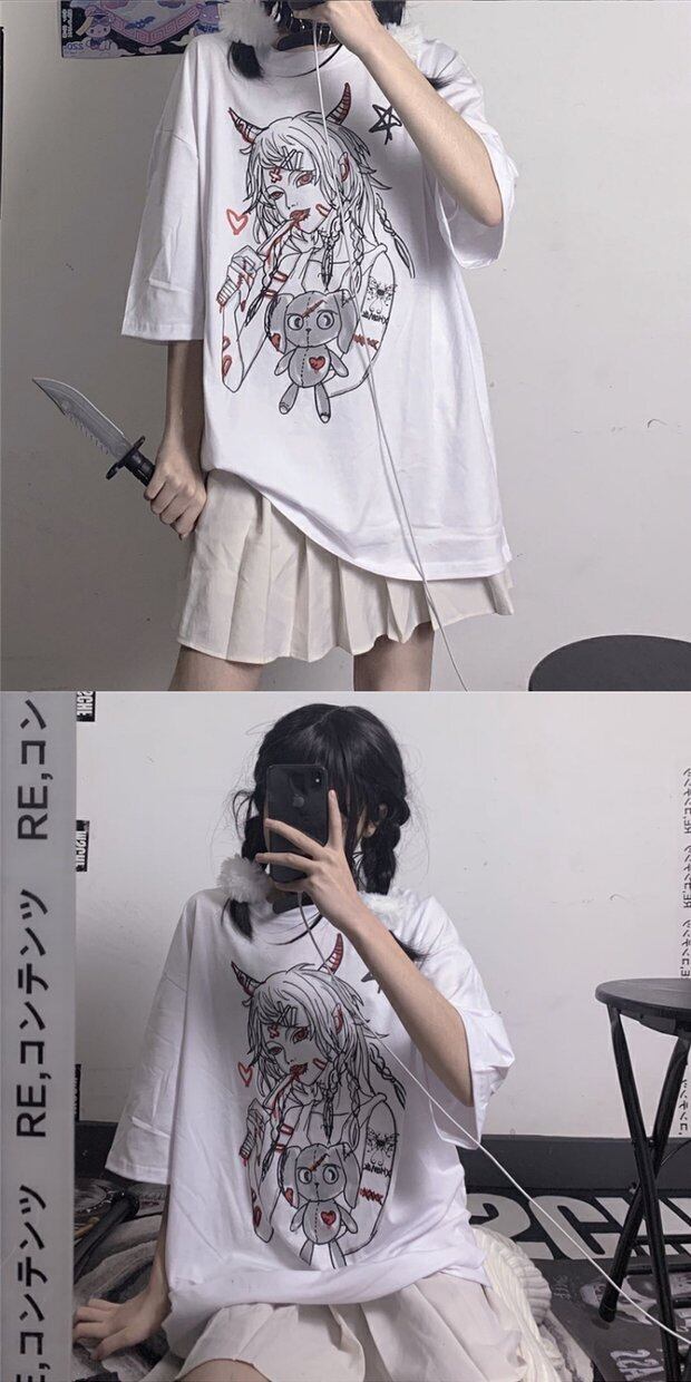 スタイルTシャツレディース夏服韓国ファッショントレンドダークプリントホワイトルーズトップス 原宿 夏物 デーモン9567659514