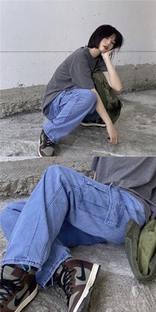 ジーンズ レディーススプリングトレンドルーズハイウェスト薄手パンツ 春物 ボーイズ ウエスト デーモン38436463235