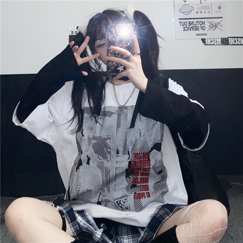 Tシャツレディーススプリング韓国ファッショントレンドスタイルプリントルーズゆったりトップス ロング 原宿 春物 長袖 デーモン63483514979