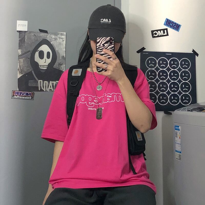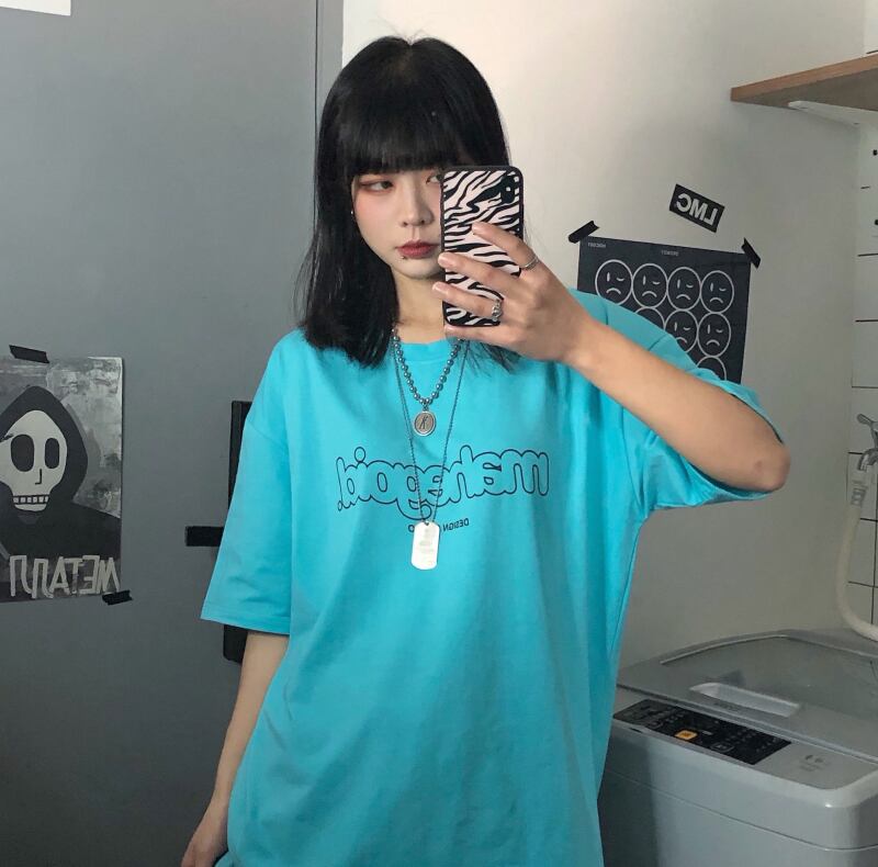 Tシャツレディース夏服韓国ファッショントレンドスタンダードプリントルーズトップス レトロ 夏物 スタイル デーモン23522017187