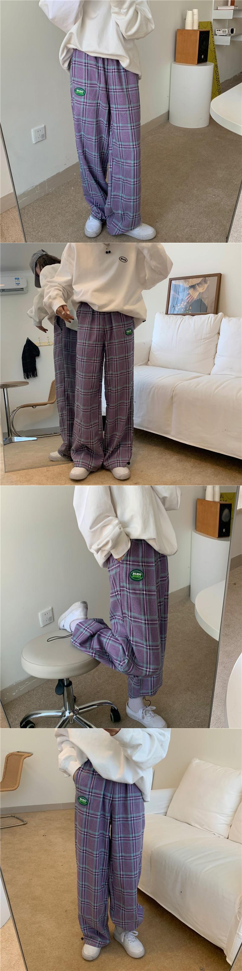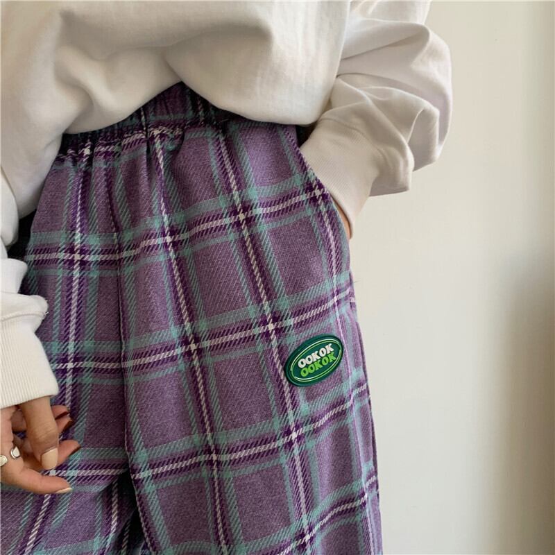 スプリングパンツ レディーストレンド格子柄ルーズカジュアル ストリート 春物 パープル ボーイズ デーモン1056381012
