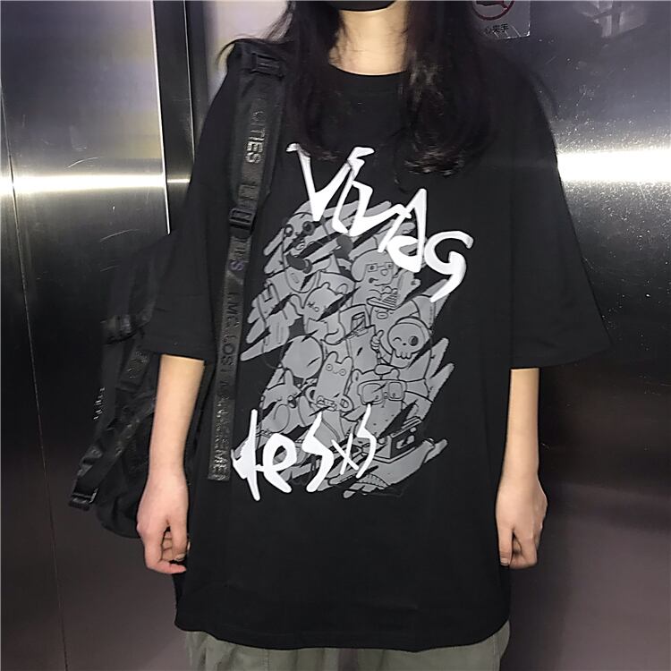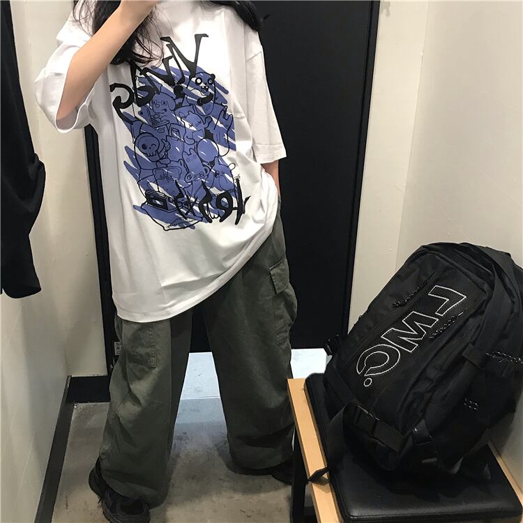 Tシャツレディース夏服韓国ファッショントレンドプリントホワイトルーズラウンドネックトップス 夏物 Oネック スタイル デーモン61704121384