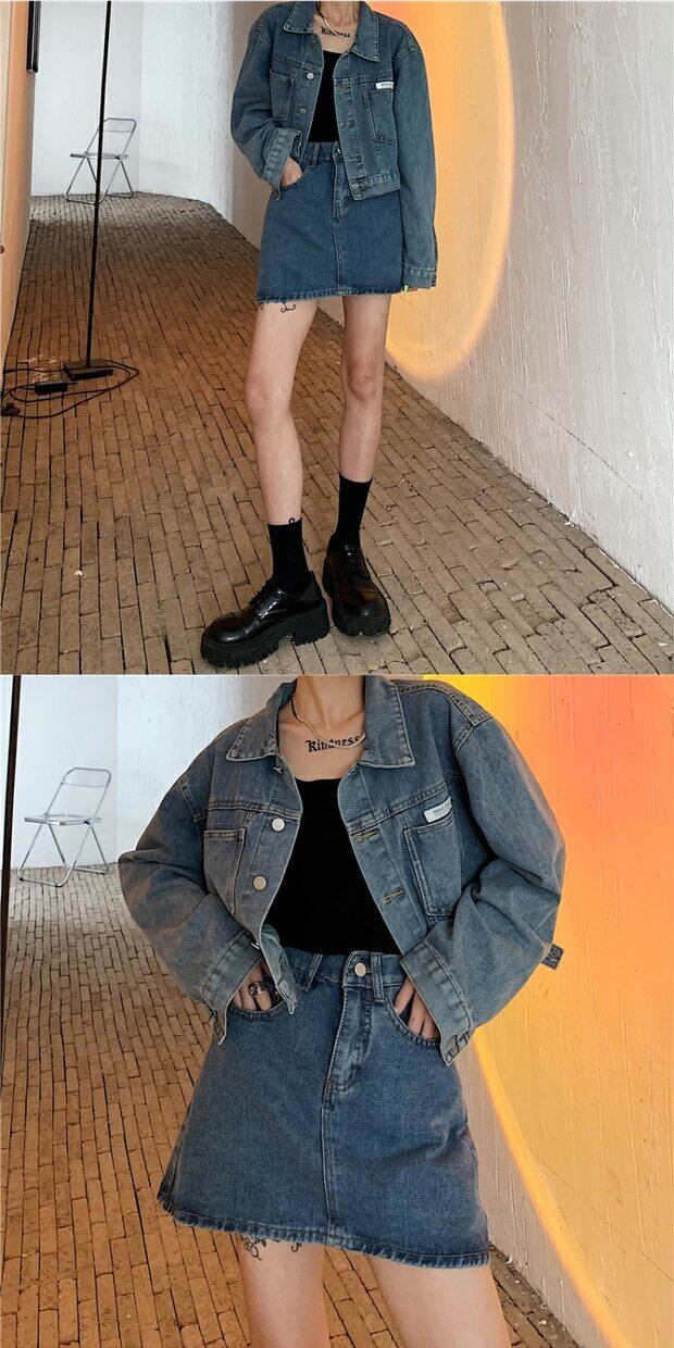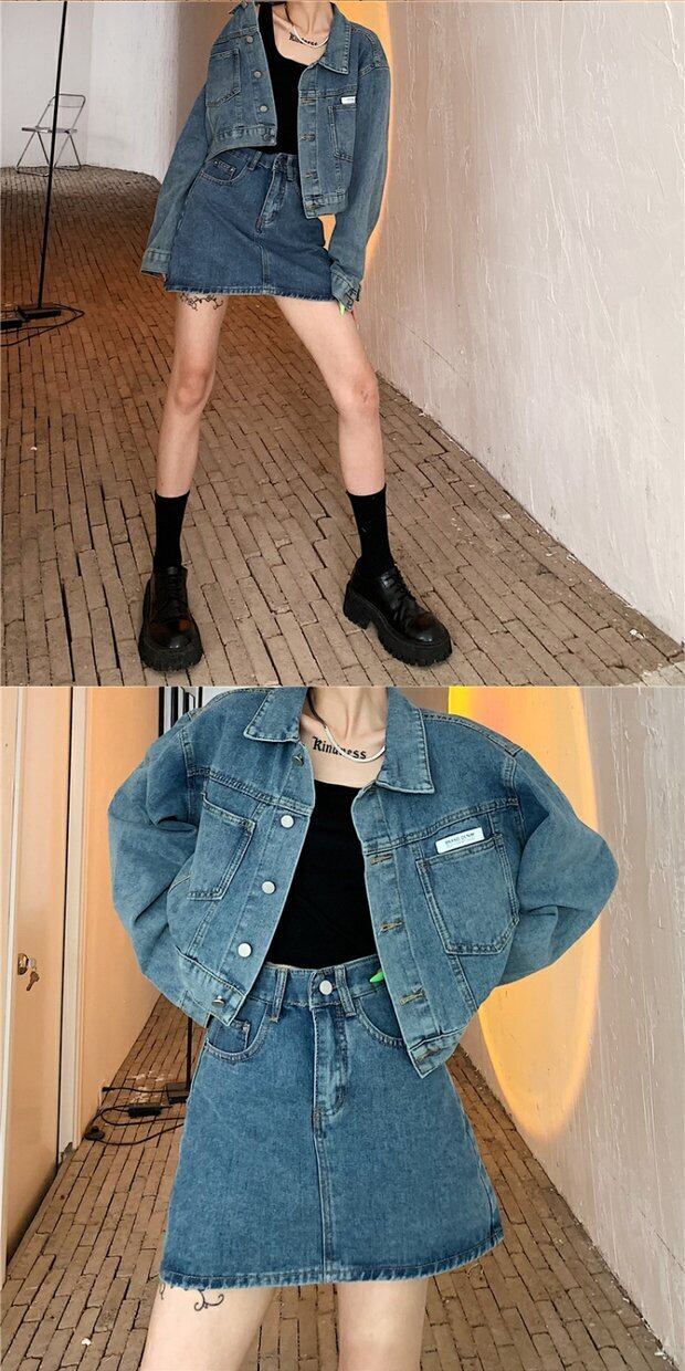 レディーススプリングトレンドハイウェストウェストスカート ショートカジュアルジャケット 春物 ウエスト デーモン69706821239