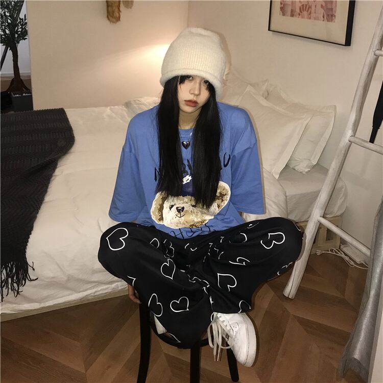 レディーススプリングトレンドプリントブラックパンツ ルーズカジュアルスリム ストリート 春物 ボーイズ デーモン76380295172