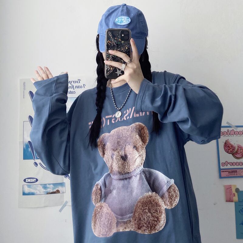 スプリングレディーストレンド韓国ファッションスタンダードプリント柄ルーズゆったりTシャツメンズ ロング レトロ 春物 スタイル 長袖 CHIL60801387853